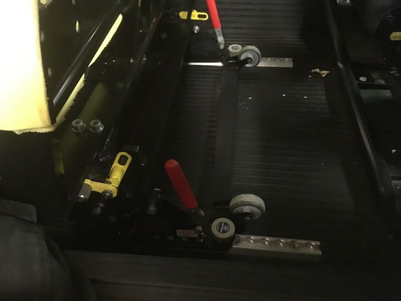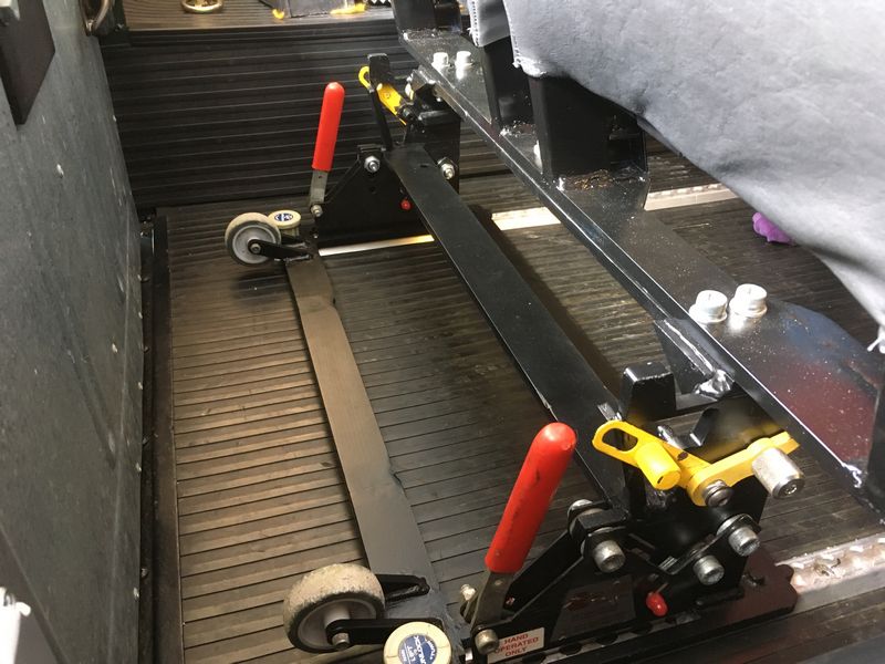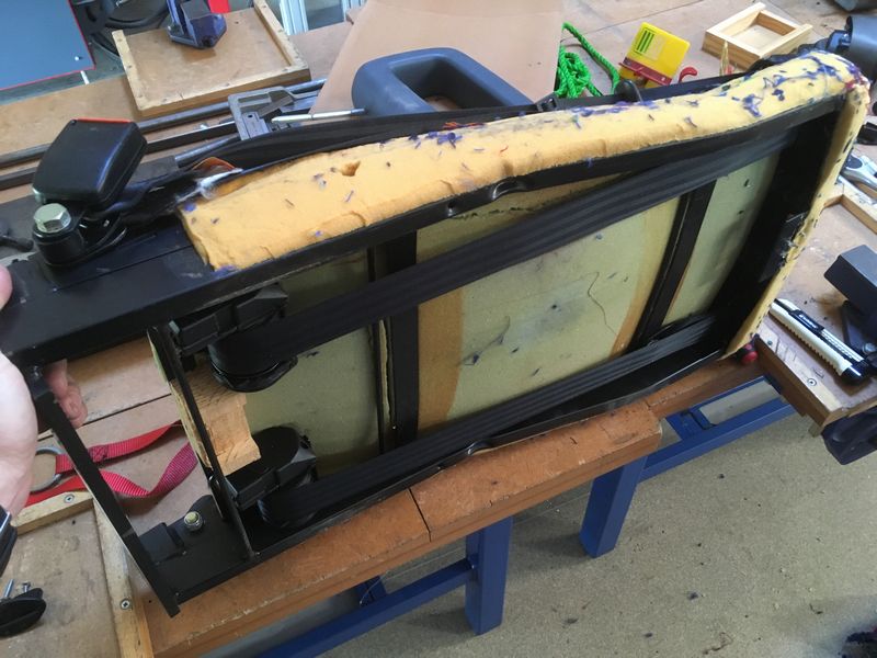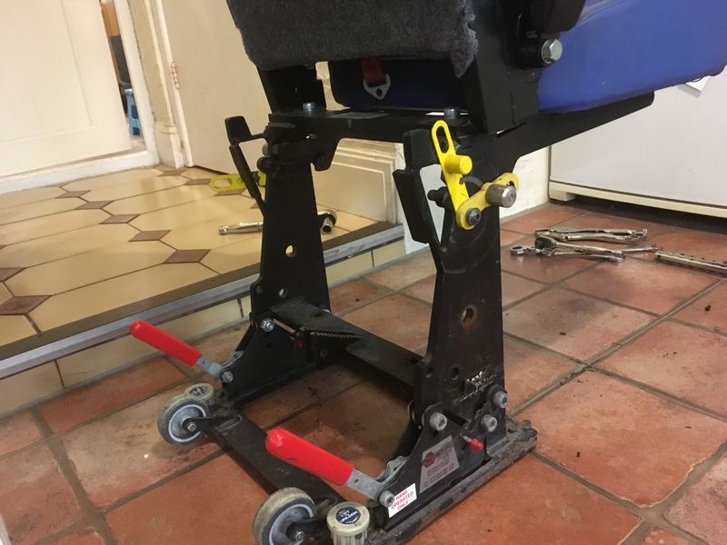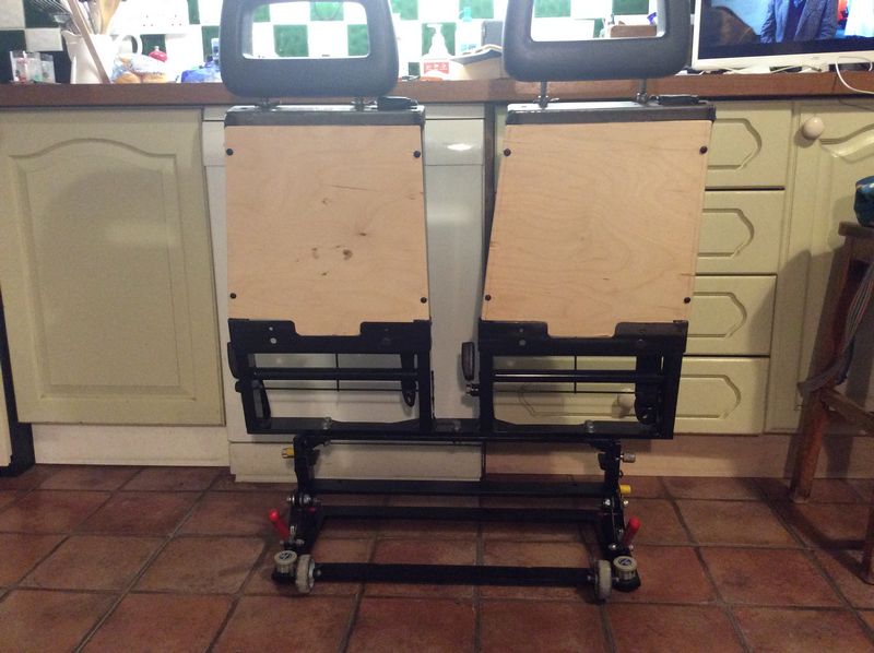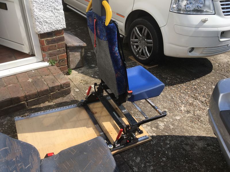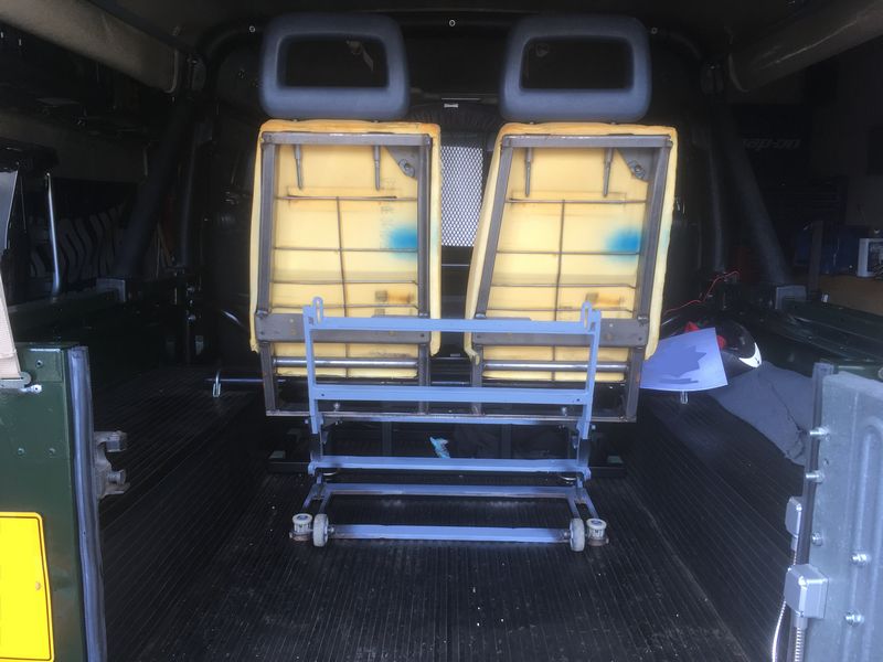 Traditional sideways benches are unsafe. Other 'transit' type seats are far too high. Bolting in a rear bench gives little adaptability and there remains no capacity for adding good seatbelts. The plan is to adapt WAV mobility seats to make a removable bench which is mounted via QR levers onto UNWIN tracking. The tracking will be chassis fixed. Seats have integral 3 way belts and due to UNWIN rails can be mounted forwards or rear facing. Seat squabs are also QR.